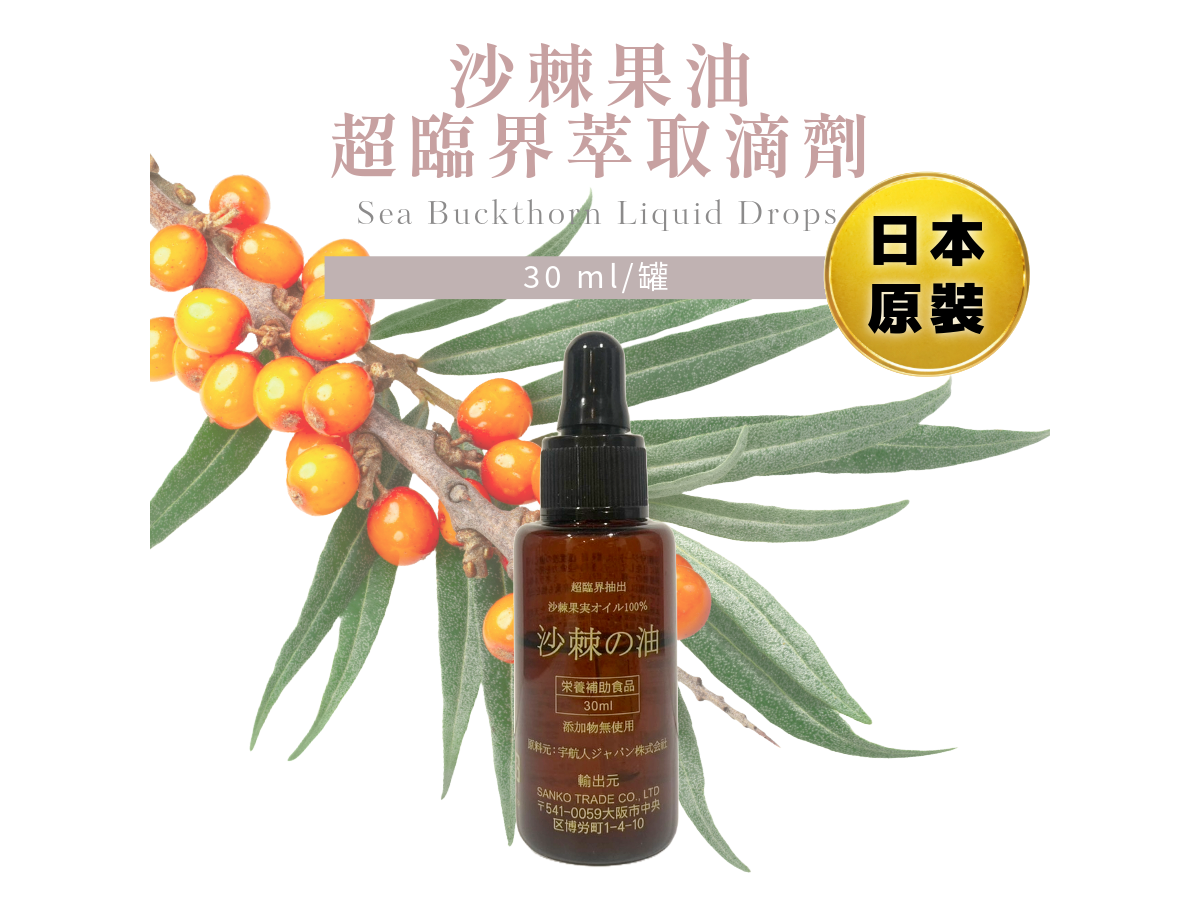 日本原裝保健。製造廠:SANKO TRADE CO.,LTD。內容規格:30ml/罐。成分: 沙棘果油。