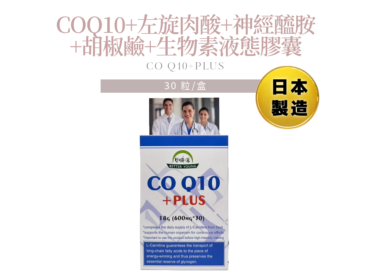 成分:左旋肉酸(450毫克)、輔酵素Q10(30毫克)、米胚芽萃取物(神經醯胺)(15毫克)