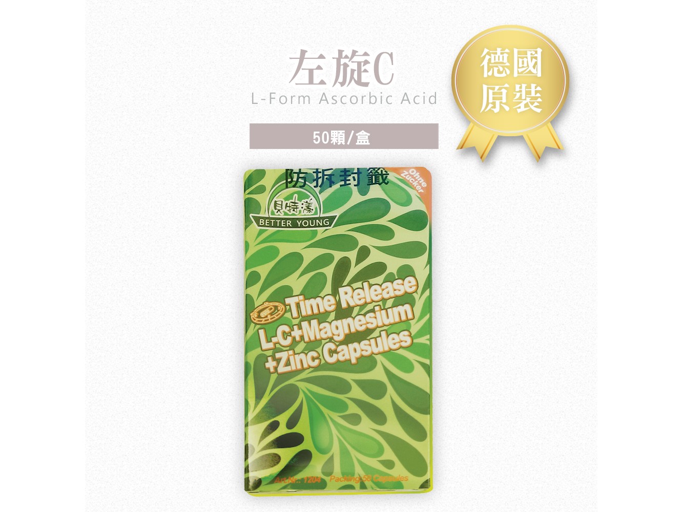 主訴求成分:左旋維他命C、鎂、鋅、E 緩釋24小時