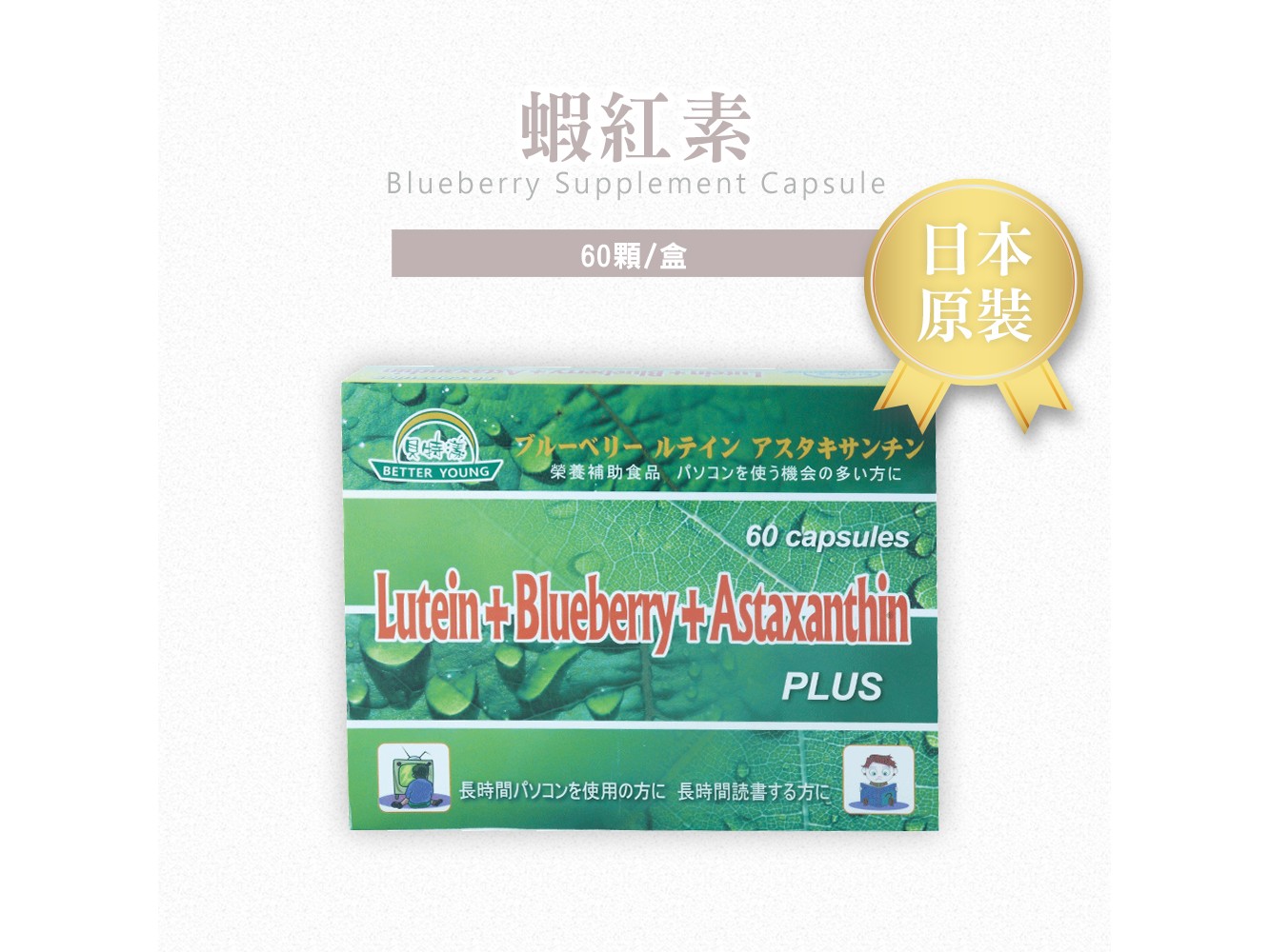 主訴求成分: 葉黃素30mg+蝦紅素20mg足量