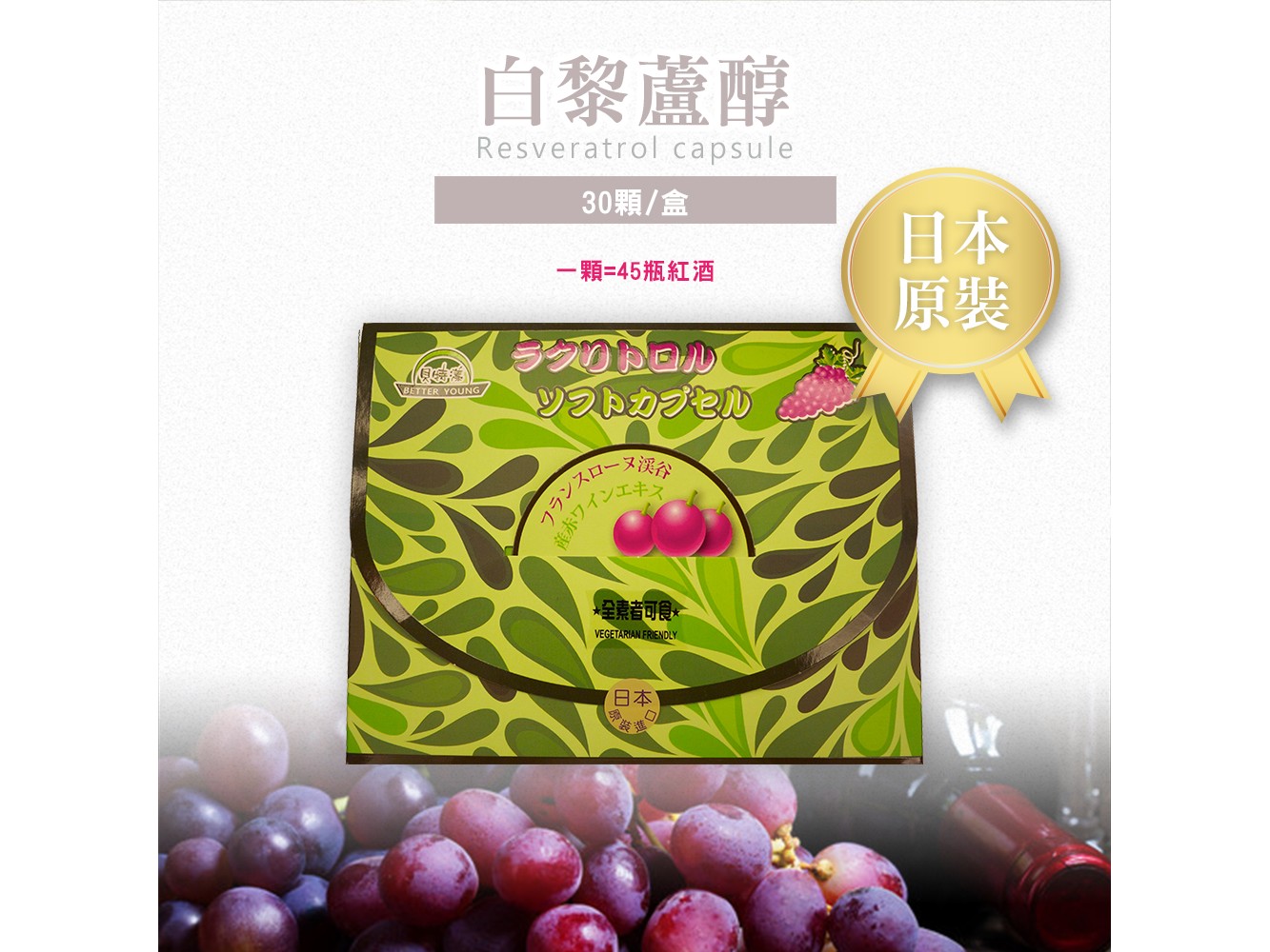 主訴求成分: 白藜蘆醇